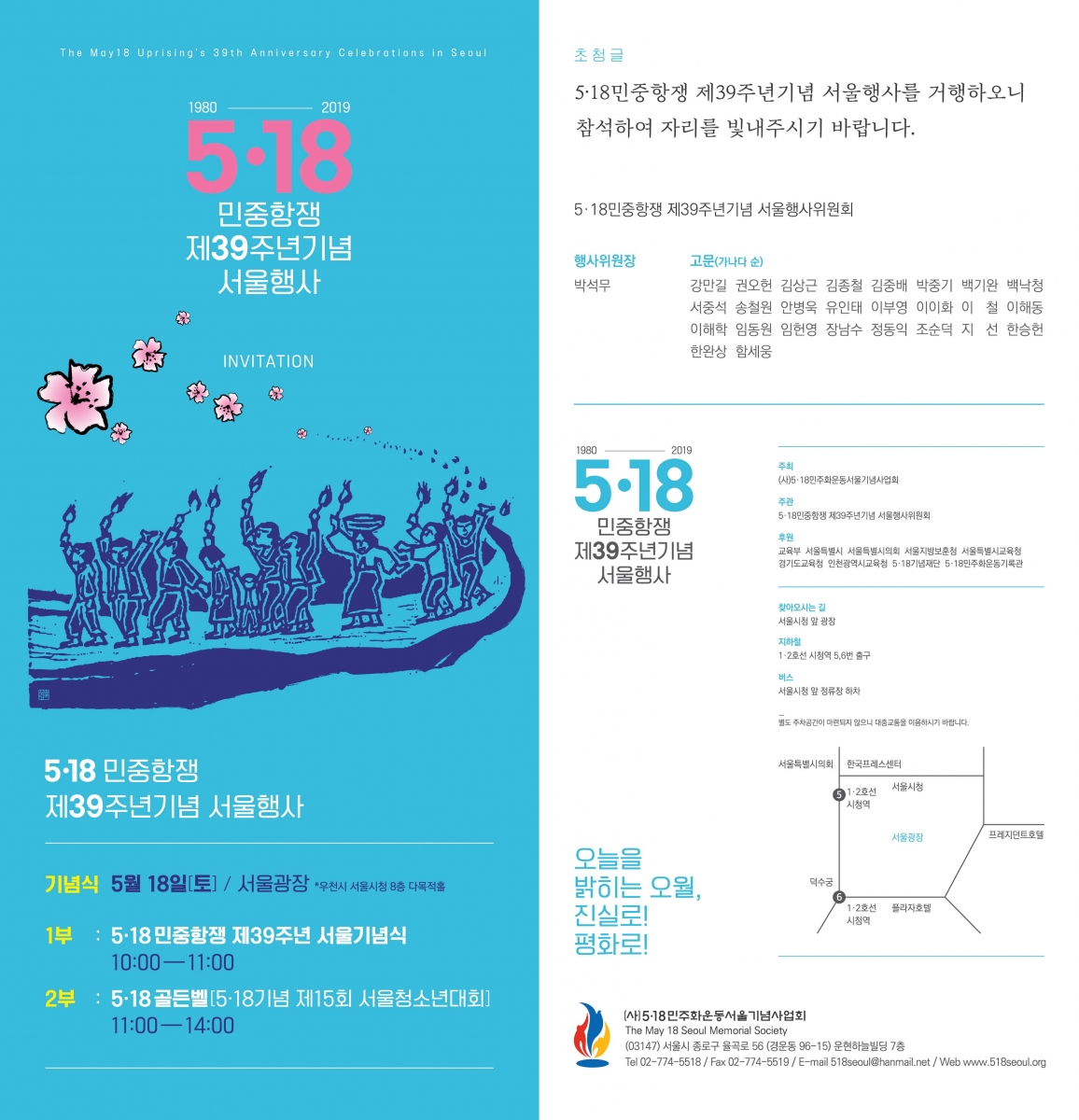 - 5.18민중항쟁 제39주년 기념 서울행사에 초대합니다.에 대해 자세히 읽기