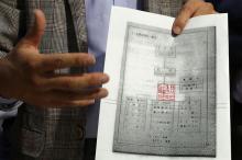 23일 오전 서울 용산구 국방부 브리핑룸에서 열린 5·18 특별조사위 중간 조사 결과 발표 기자회견에서 공개된 '역사자료 광주사태 체험수기' 및 전두환 정부 당시 80위원회 자료. 5·18 민주화 운동 당시 진압에 동원된 장병들의 체험수기 곳곳에 강제진압 등 군에 불리한 내용들이 수정 및 삭제돼있다. 서울=연합뉴스