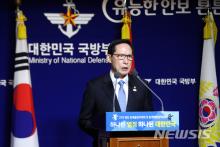 【서울=뉴시스】김선웅 기자 = 송영무 국방부장관이 9일 오전 서울 용산구 국방부에서 5.18 특조위 발표 관련 국방부의 입장을 발표하고 있다.