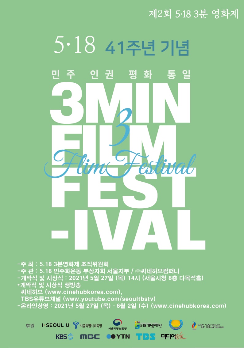 By 518seoul on 화, 03/16/2021 - 06:19 제2회 3분영화제 작품공모 3월 15(월)~4월30일(금) www.cinehubkorea.com 5월 27일(목) 서울시청 다목적홀(시상식 및 상영회)