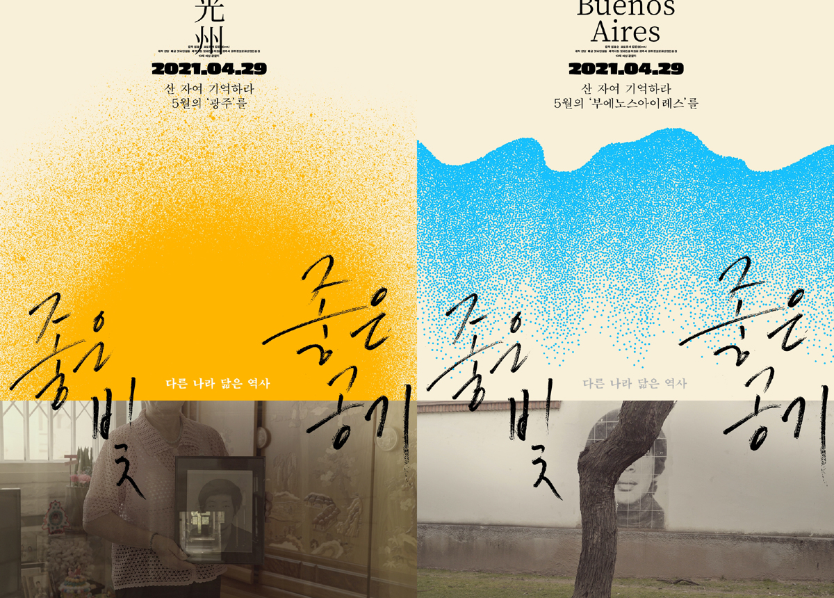 한편 개봉 확정과 함께 공개된 2종의 티저 포스터는 각기 빛과 공기라는 아름다운 이름의 광주와 부에노스아이레스를 맑은 색채가 돋보이는 예술적인 이미지로 그려내 시선을 사로잡는다. 여기에 “산 자 기억하라, 5월의 ‘광주’를”, “산 자 기억하라, 5월의 ‘부에노스아이레스’를”이라는 문구로 다른 나라, 닮은 역사를 다룬 영화가 보여줄 예술적인 영상 언어로서의 고고학적 아트멘터리다운 면모를 기대하게 한다. 4월 29일 개봉.