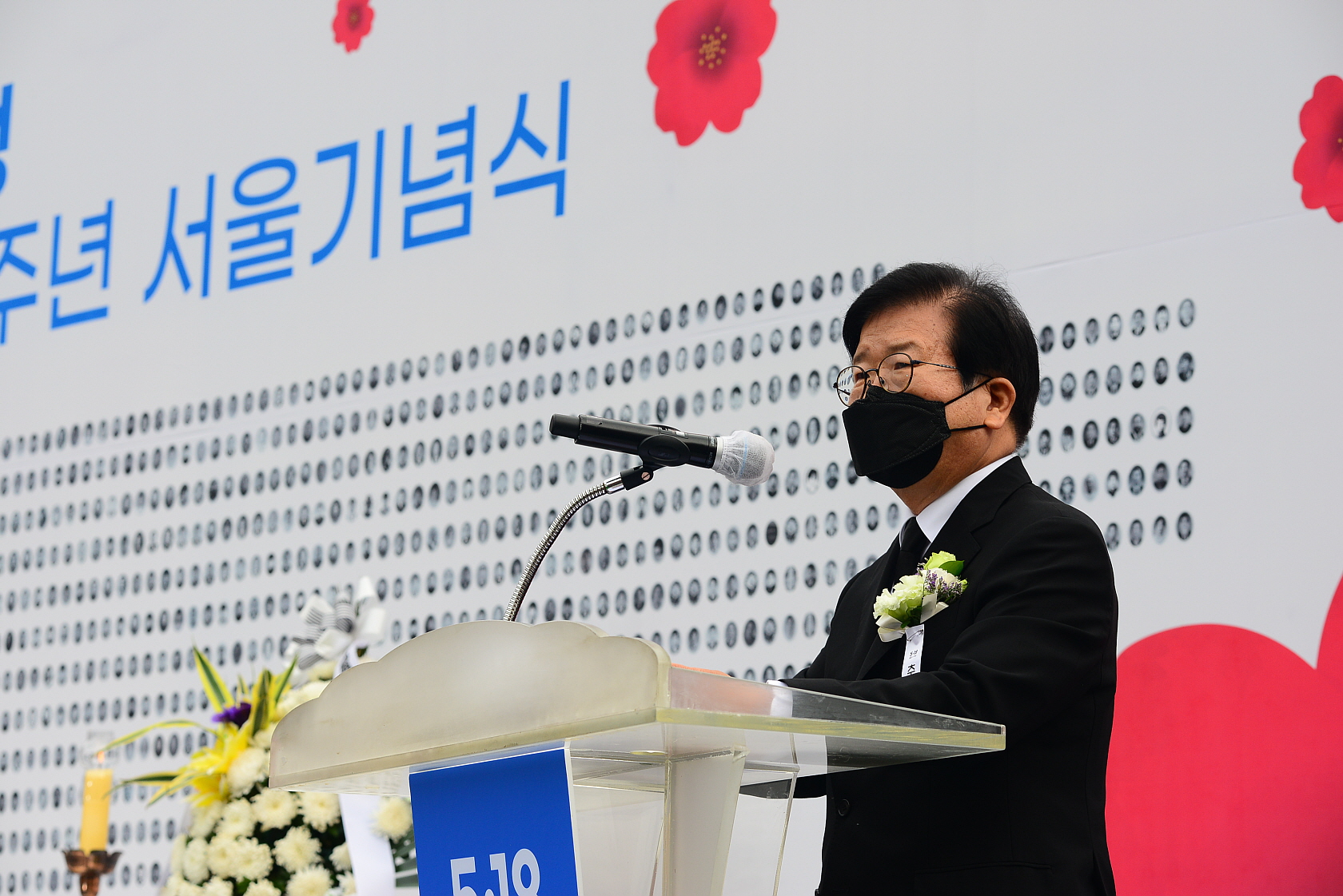 박석무 행사위원장, 문석진 서대문구청장의 인사말씀후 코로나로 인한 99명 내빈 헌화분향으로 진행되었습니다.