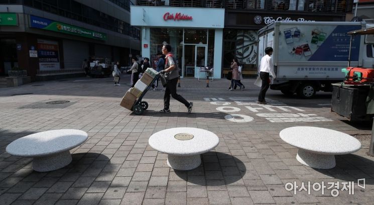 5.18 민주화운동 기념일을 일주일여 앞둔 10일 서울 중구 명동성당 앞에 5·18 광주민주화운동 정신을 기억하자는 의미를 담은 기념 조형물 ‘오월 걸상’이 설치돼 있다. 오월걸상위원회는 일본군 위안부 피해자들을 기리는 ‘평화의 소녀상’처럼 5·18 정신 계승하기 위해 ‘오월 정신의 전국화, 현재화’를 기치로 내걸고 전국 여러 곳에 5·18 정신을 기억하는 오월 걸상을 설치하는 사업을 진행하고 있다. 명동의 오월 걸상은 부산과 전남 목포에 오월 걸상이 설치된 이후 전국에서 세 번째다./김현민 기자 kimhyun81@