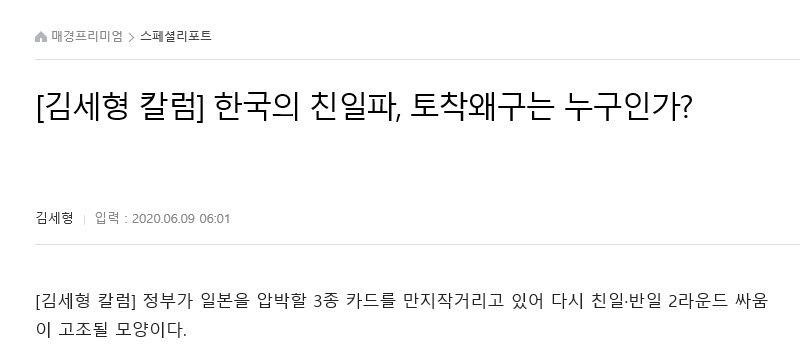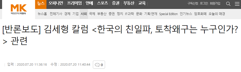 ☞기사원문: [반론보도] 김세형 칼럼 <한국의 친일파, 토착왜구는 누구인가?> 관련
