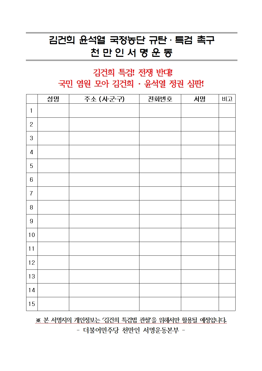 수, 2024/11/13- 00:00 에 admin 에 의해 제출됨 [0] 관련 개인/그룹 민주당 전북도당 정당 더불어민주당 지역 전북 카테고리 공지사항 (양식)서명지.hwp 링크 https://jeonbuk.theminjoo.kr/party/sub/news/view.php?brd=112&post=1466&board_id=notice Like 0 Dislike 0 댓글 달기 이름 제목 Comment 저장 Preview