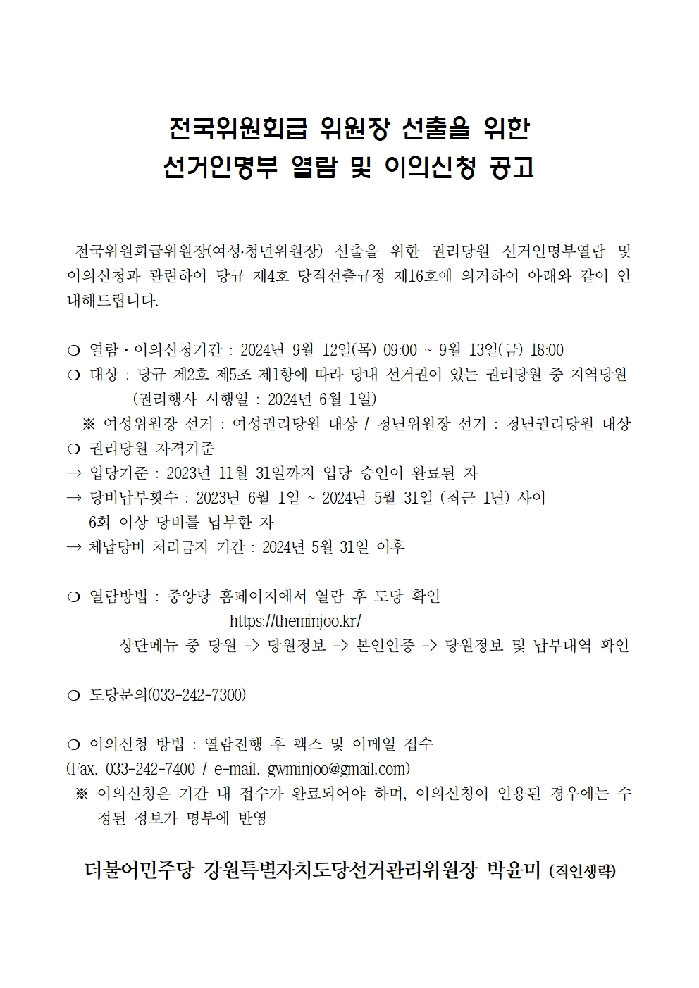 수, 2024/09/11- 00:00 에 admin 에 의해 제출됨 [0] 관련 개인/그룹 민주당 강원도당 정당 더불어민주당 지역 강원 카테고리 공지사항 링크 https://www.gwminjoo.kr/portal/F20000/F20100/boardView?board_key=2832&page=1 Like 0 Dislike 0 댓글 달기 이름 제목 Comment 저장 Preview
