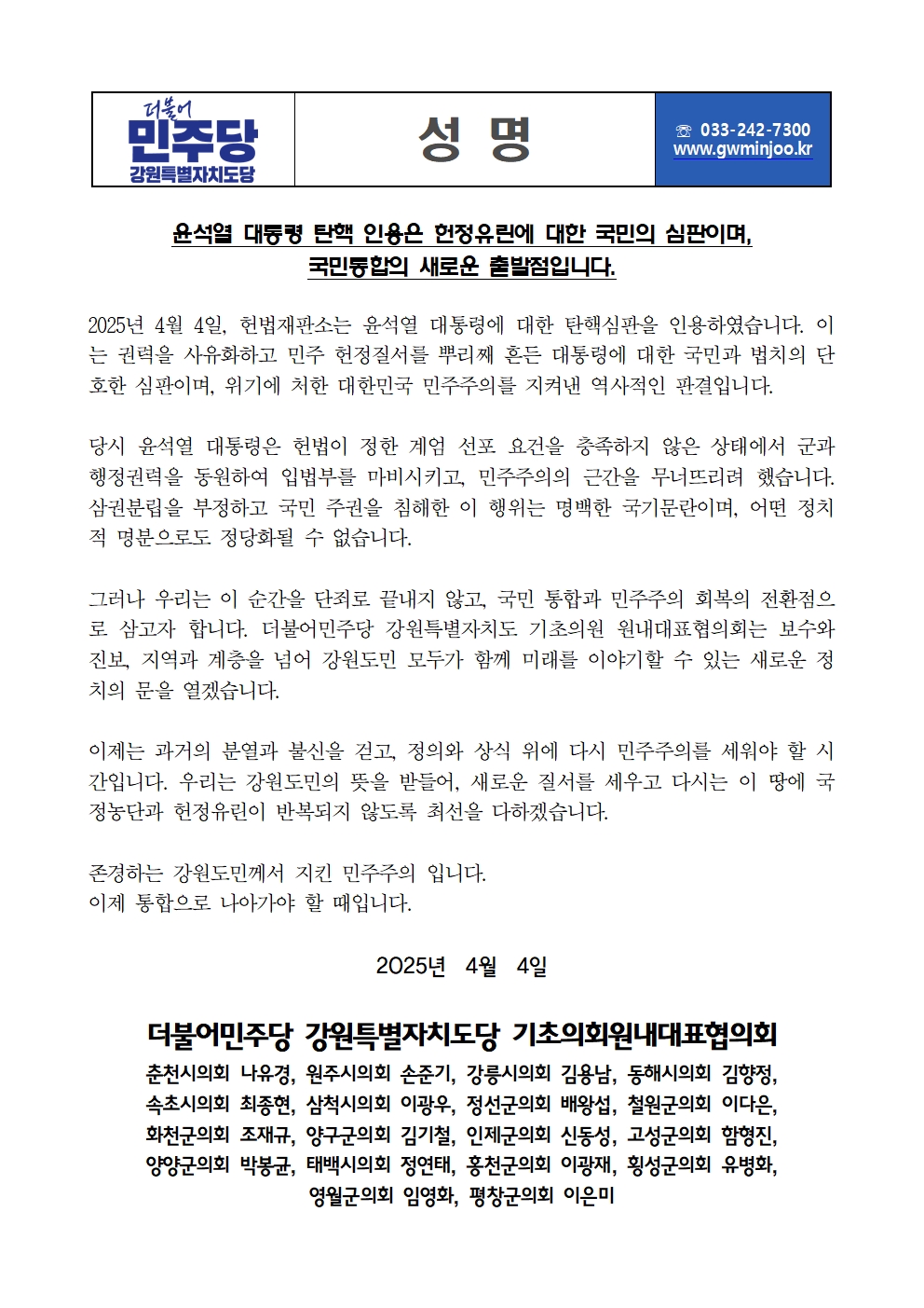 금, 2025/04/04- 00:00 에 admin 에 의해 제출됨 [0] 관련 개인/그룹 민주당 강원도당 정당 더불어민주당 지역 강원 카테고리 보도자료·성명·논평 링크 https://www.gwminjoo.kr/portal/F20000/F20300/boardView?board_key=3198&page=1 Like 0 Dislike 0 댓글 달기 이름 제목 Comment 저장 Preview
