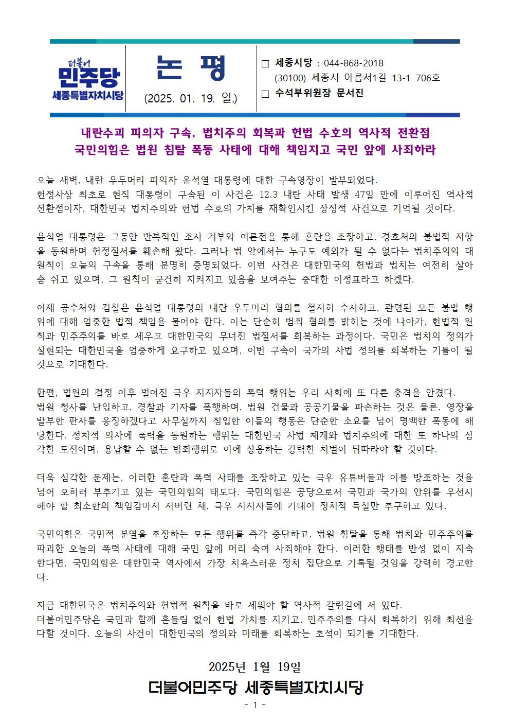 일, 2025/01/19- 00:00 에 admin 에 의해 제출됨 [0] 관련 개인/그룹 민주당 세종시당 정당 더불어민주당 지역 세종 카테고리 논평브리핑 20250119_논평_윤석열_구속_법원_폭동_국민의힘은_국민앞에_사죄하라.pdf 링크 https://sejong.theminjoo.kr/party/sub/news/view.php?brd=54&post=889&board_id=briefing Like 0 Dislike 0 댓글 달기 이름 제목 Comment 저장 Preview