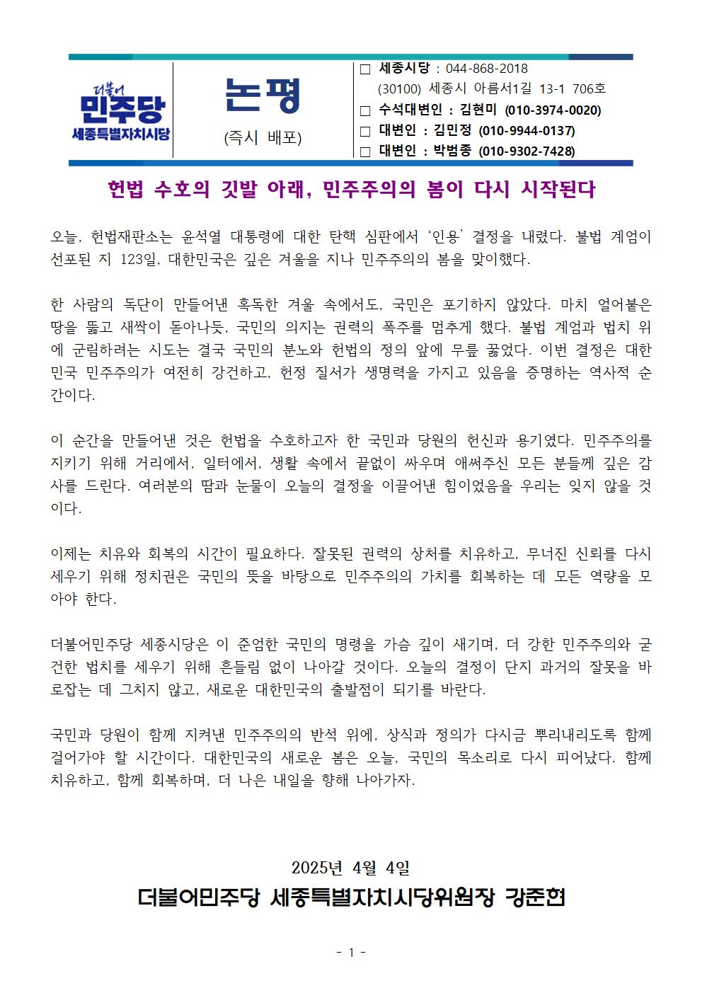 금, 2025/04/04- 00:00 에 admin 에 의해 제출됨 [0] 관련 개인/그룹 민주당 세종시당 정당 더불어민주당 지역 세종 카테고리 논평브리핑 링크 https://sejong.theminjoo.kr/party/sub/news/view.php?brd=54&post=908&board_id=briefing Like 0 Dislike 0 1 view 댓글 달기 이름 제목 Comment 저장 Preview