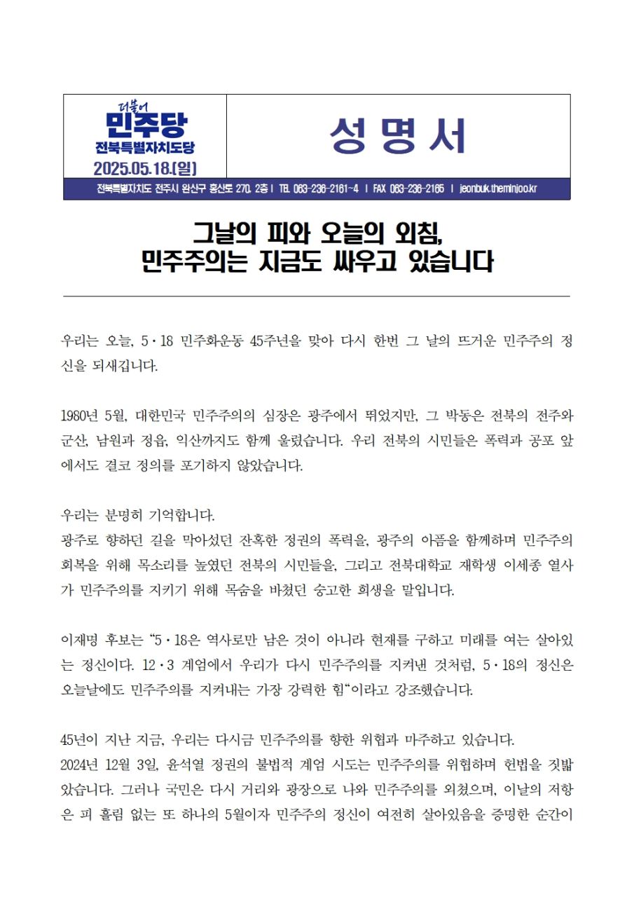 일, 2025/05/18- 00:00 에 admin 에 의해 제출됨 [0] 관련 개인/그룹 민주당 전북도당 정당 더불어민주당 지역 전북 카테고리 보도자료·성명·논평 250518_성명서_518 민주화운동 45주년 관련.hwp 링크 https://jeonbuk.theminjoo.kr/party/sub/news/view.php?brd=60&post=1747&board_id=briefing Like 0 Dislike 0 댓글 달기 이름 제목 Comment 저장 Preview