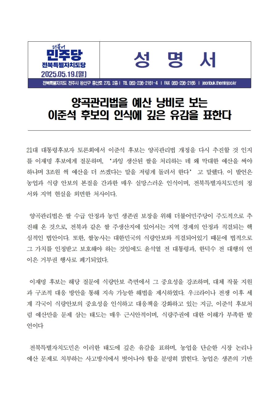 월, 2025/05/19- 00:00 에 admin 에 의해 제출됨 [0] 관련 개인/그룹 민주당 전북도당 정당 더불어민주당 지역 전북 카테고리 보도자료·성명·논평 250519_성명서_양곡관리법_이준석후보_인식_유감_v1.0.hwp 링크 https://jeonbuk.theminjoo.kr/party/sub/news/view.php?brd=60&post=1749&board_id=briefing Like 0 Dislike 0 댓글 달기 이름 제목 Comment 저장 Preview