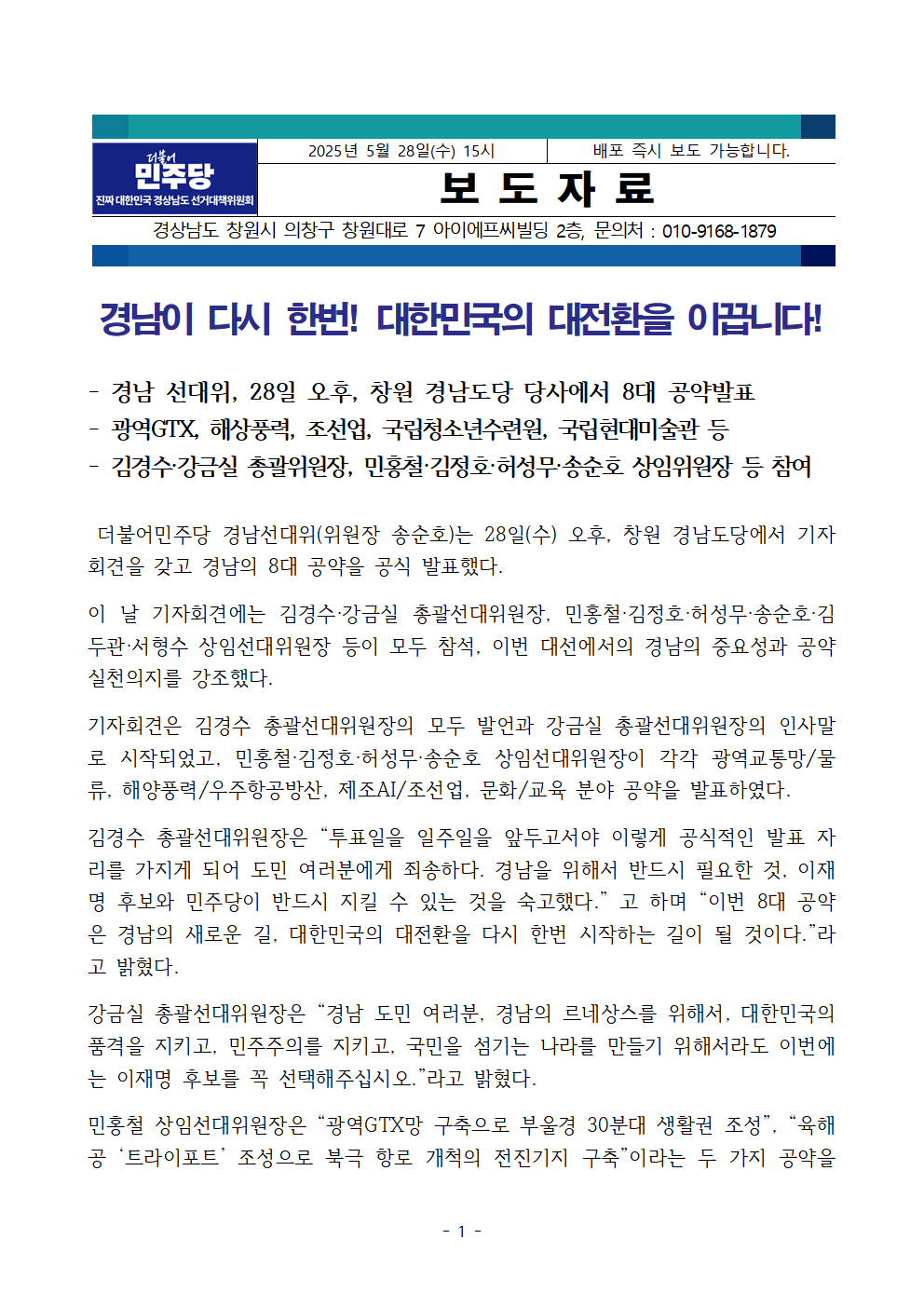 목, 2025/05/29- 00:00 에 admin 에 의해 제출됨 [0] 관련 개인/그룹 민주당 경남도당 정당 더불어민주당 지역 경남 카테고리 보도자료 링크 https://www.minjoogn.or.kr/sub02/sub02_01.php?code=020201&page=1&bbsData=&idx=879&search=&searchstring=&gubunx=&mode=view&m2= Like 0 Dislike 0 댓글 달기 이름 제목 Comment 저장 Preview