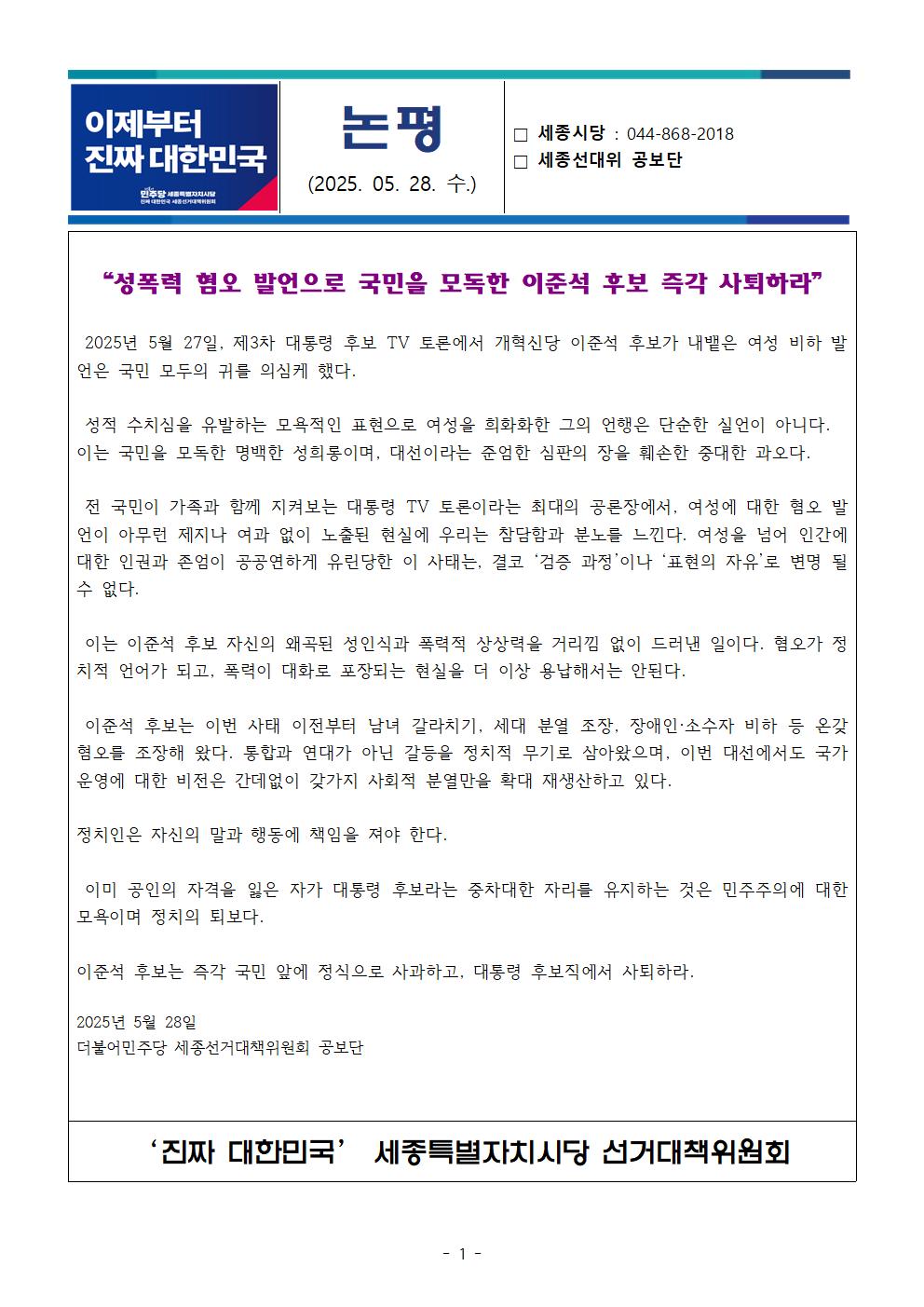 수, 2025/05/28- 00:00 에 admin 에 의해 제출됨 [0] 관련 개인/그룹 민주당 세종시당 정당 더불어민주당 지역 세종 카테고리 논평브리핑 링크 https://sejong.theminjoo.kr/party/sub/news/view.php?brd=54&post=953&board_id=briefing Like 0 Dislike 0 댓글 달기 이름 제목 Comment 저장 Preview
