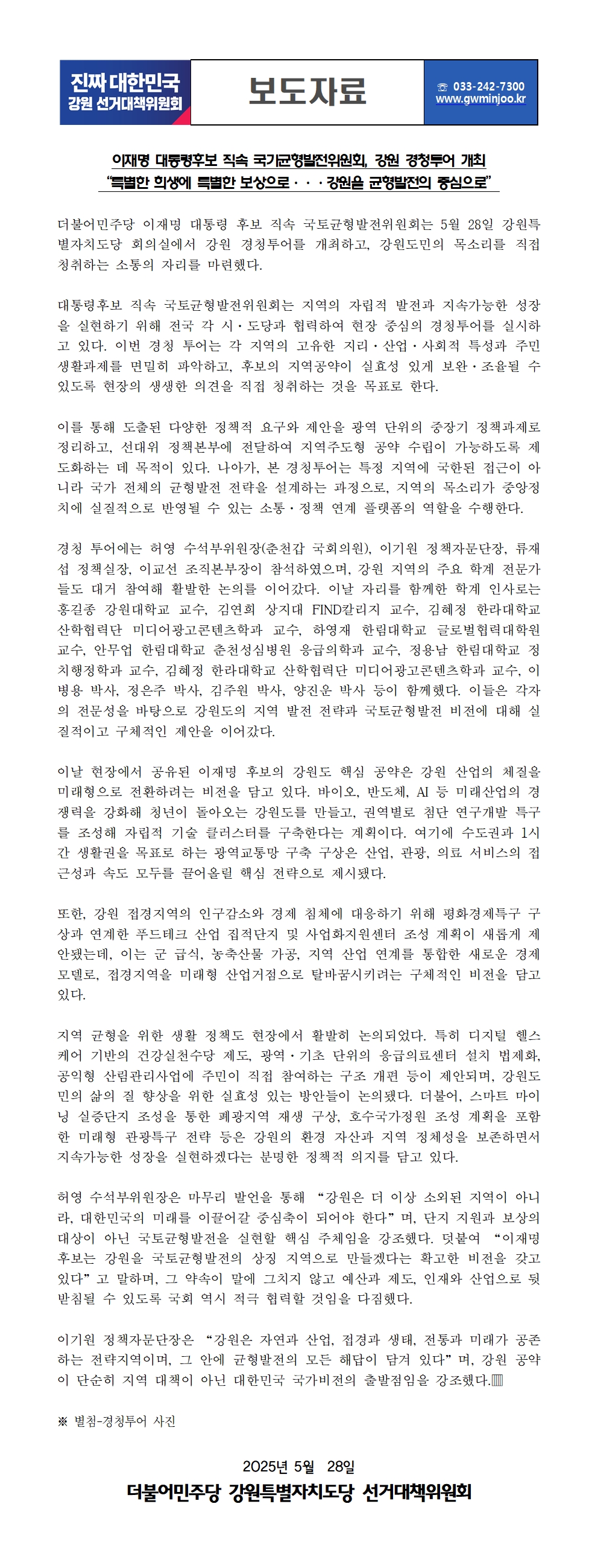 수, 2025/05/28- 00:00 에 admin 에 의해 제출됨 [0] 관련 개인/그룹 민주당 강원도당 정당 더불어민주당 지역 강원 카테고리 보도자료·성명·논평 링크 https://www.gwminjoo.kr/portal/F20000/F20300/boardView?board_key=3337&page=1 Like 0 Dislike 0 댓글 달기 이름 제목 Comment 저장 Preview
