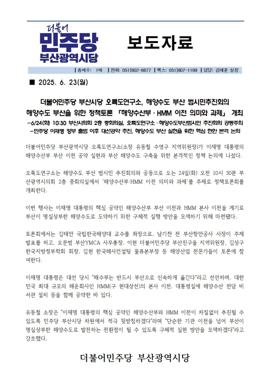 월, 2025/06/23- 00:00 에 admin 에 의해 제출됨 [0] 관련 개인/그룹 민주당 부산시당 정당 더불어민주당 지역 부산 카테고리 보도자료 링크 https://busan.theminjoo.kr/party/sub/news/view.php?brd=238&post=3702&board_id=press Like 0 Dislike 0 3 views 댓글 달기 이름 제목 Comment 저장 Preview