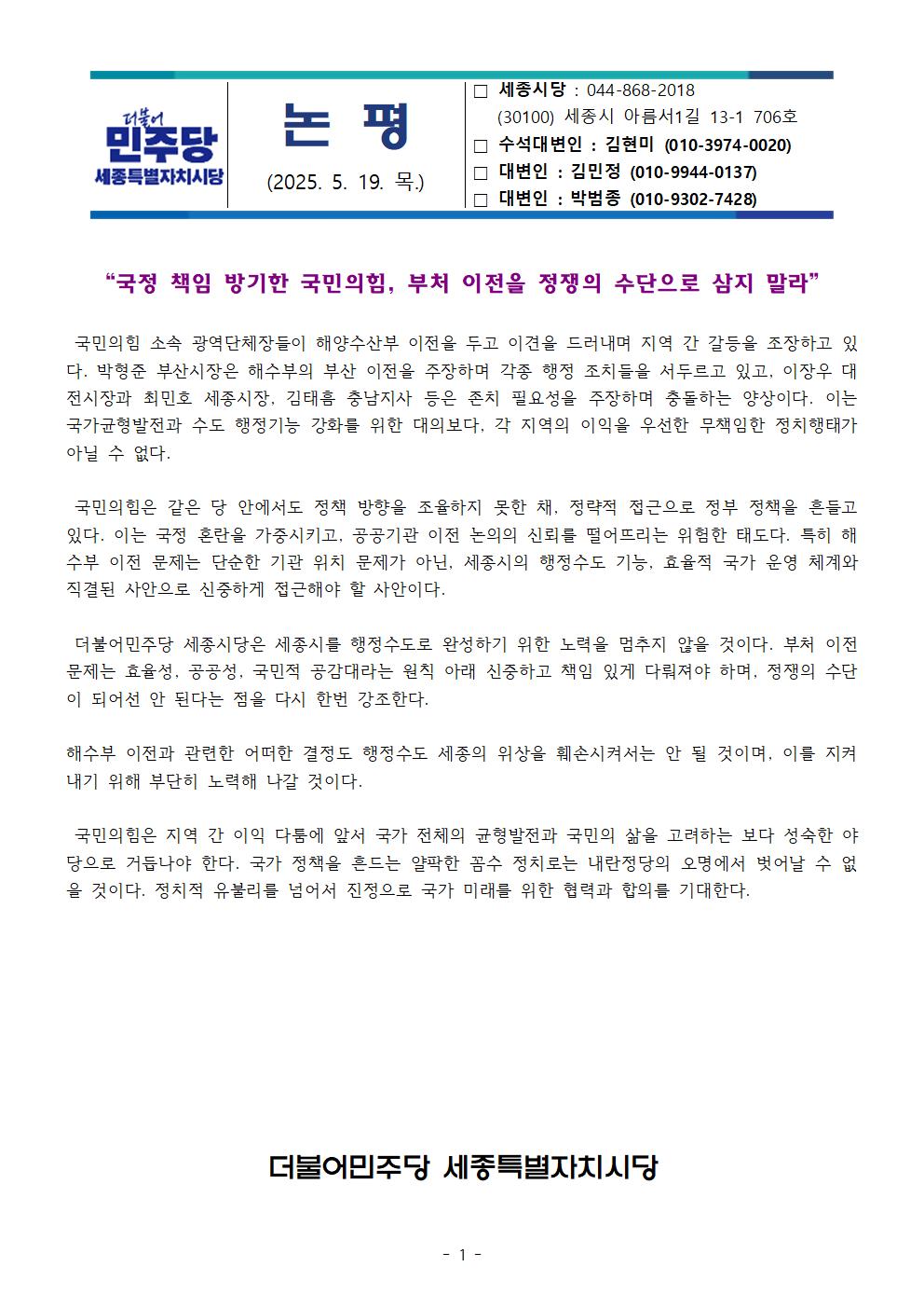 수, 2025/06/25- 00:00 에 admin 에 의해 제출됨 [0] 관련 개인/그룹 민주당 세종시당 정당 더불어민주당 지역 세종 카테고리 논평브리핑 링크 https://sejong.theminjoo.kr/party/sub/news/view.php?brd=54&post=964&board_id=briefing Like 0 Dislike 0 댓글 달기 이름 제목 Comment 저장 Preview