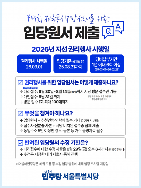 금, 2025/06/27- 00:00 에 admin 에 의해 제출됨 [0] 관련 개인/그룹 민주당 서울시당 정당 더불어민주당 지역 서울 카테고리 공지사항 링크 https://seoul.theminjoo.kr:443/bbs/board.php?bo_table=s2_2&wr_id=1199 Tags 9대 지방선거 입당원서 Like 1 Dislike 0 4 views 댓글 달기 이름 제목 Comment 저장 Preview