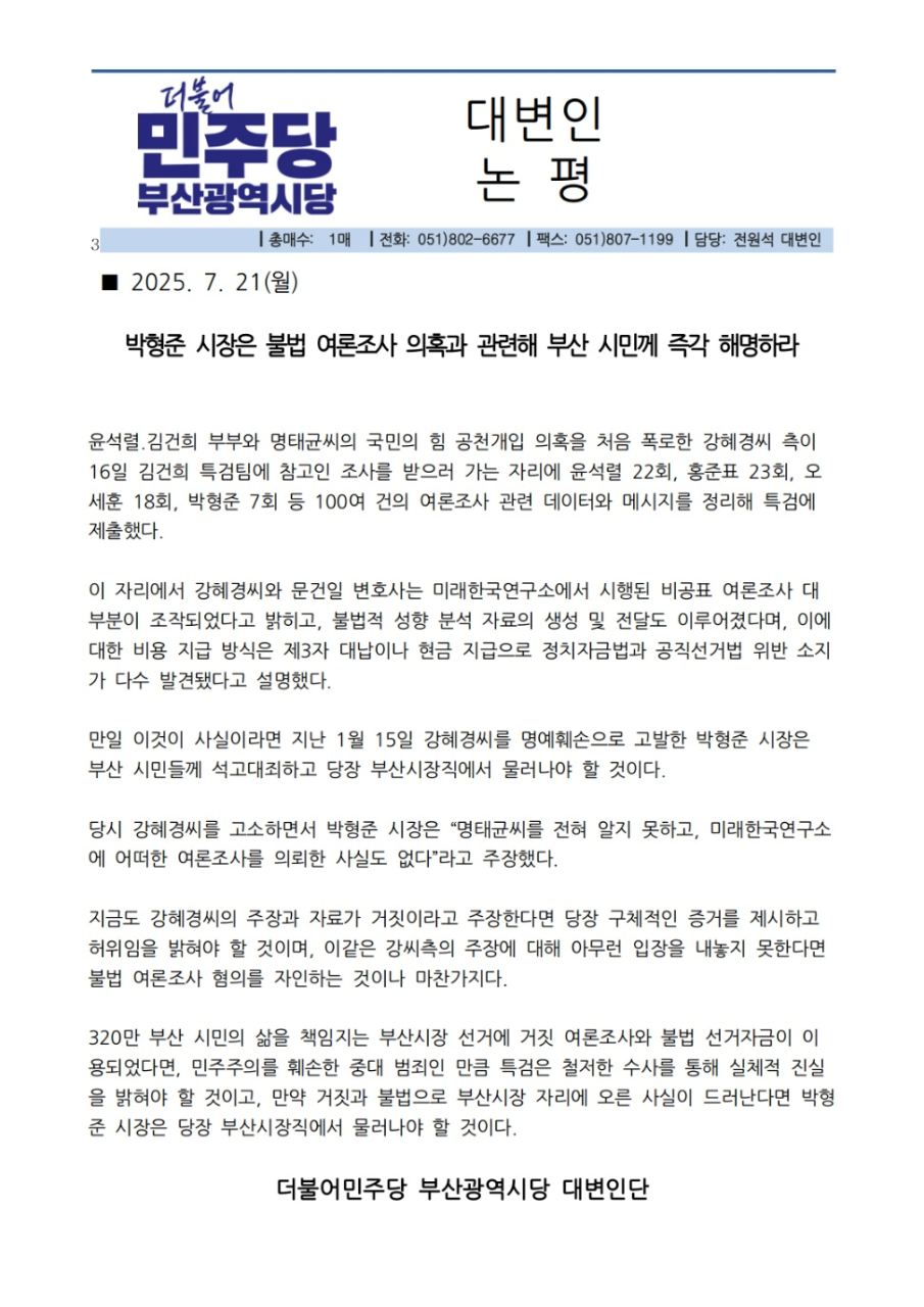 월, 2025/07/21- 00:00 에 admin 에 의해 제출됨 [0] 관련 개인/그룹 민주당 부산시당 정당 더불어민주당 지역 부산 카테고리 논평브리핑 링크 https://busan.theminjoo.kr/party/sub/news/view.php?brd=65&post=3709&board_id=briefing Like 0 Dislike 0 댓글 달기 이름 제목 Comment 저장 Preview