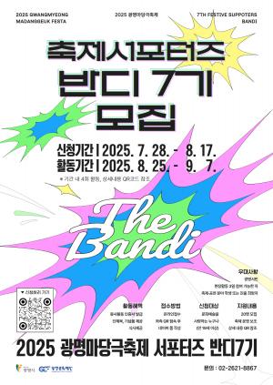 광명문화재단(대표이사 송은영)은 를 함께 만들어갈 축제 서포터즈 ‘반디 7기’ 7월 28일(월)부터 8월 17일(일)까지 모집한다. 모집인원은 만 19세 이상 시민 20명이며, 축제 전반에 직접 참여할 수 있는 기회가 주어진다.‘반디 7기’는 ▲공연 운영 지원 ▲MC 활동 ▲현장 안전관리 ▲안내소 운영 등 축제 전 과정에 참여하는 실무형 서포터즈로, 문화예술과 축제에 관심 있는 시민 누구나 지원할 수 있다.서류심사를 거쳐 최종 선발된 서포터즈는 오는 8월 25일(월) 발대식을 시작으로, 9월 5일(금)부터