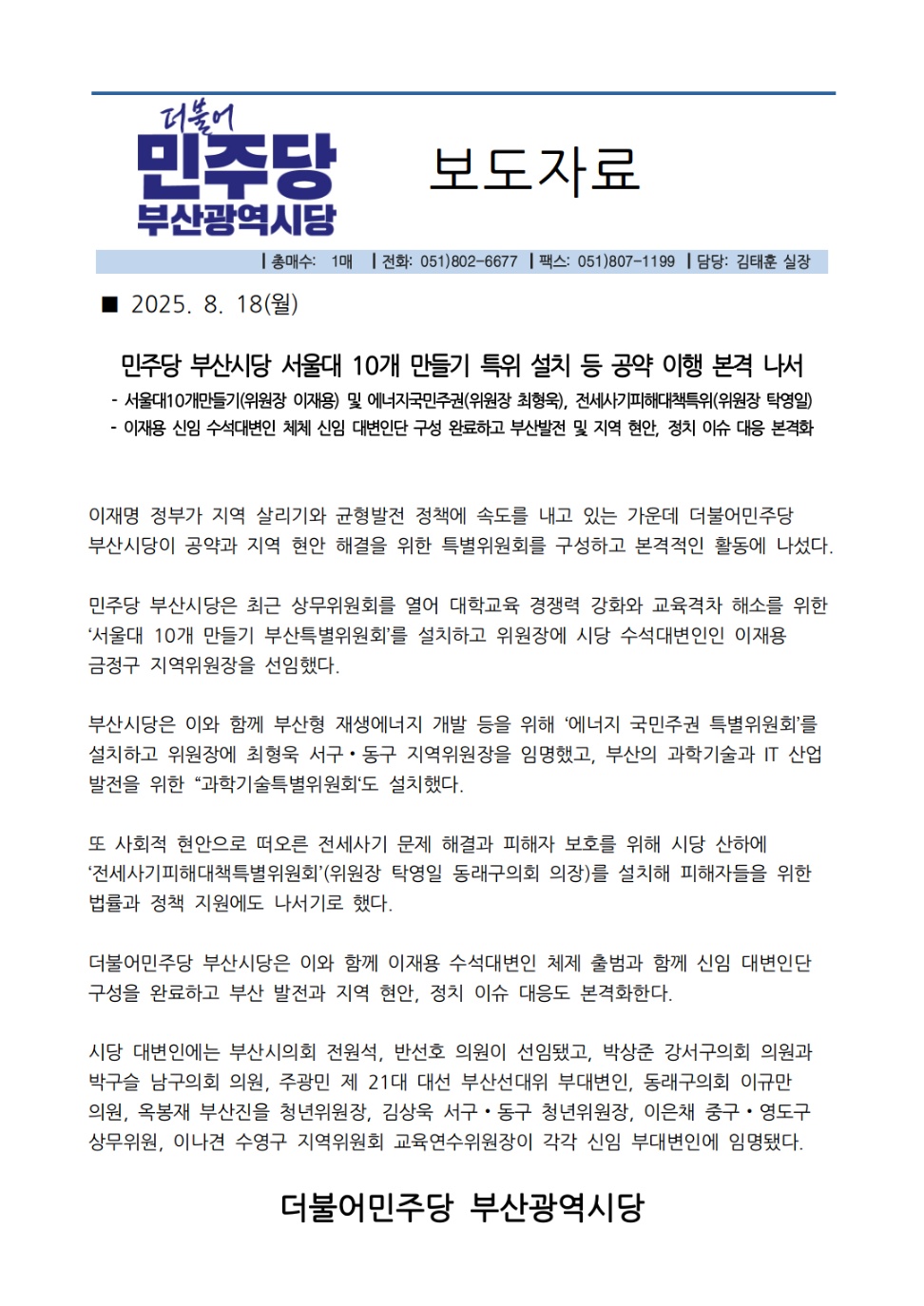 월, 2025/08/18- 00:00 에 admin 에 의해 제출됨 [0] 관련 개인/그룹 민주당 부산시당 정당 더불어민주당 지역 부산 카테고리 보도자료 링크 https://busan.theminjoo.kr/party/sub/news/view.php?brd=238&post=3723&board_id=press Like 0 Dislike 0 댓글 달기 이름 제목 Comment 저장 Preview