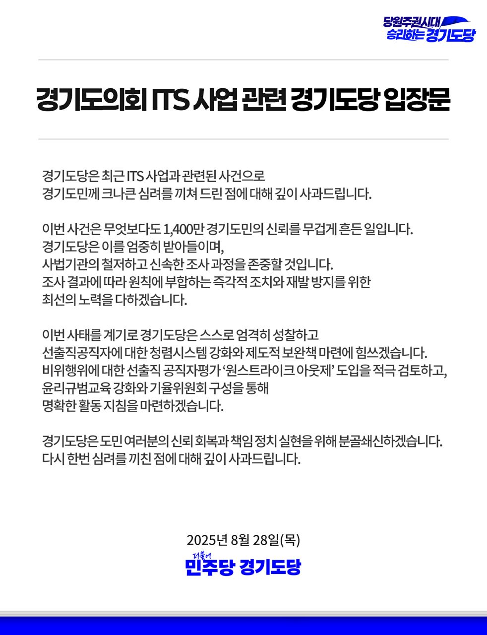 목, 2025/08/28- 00:00 에 admin 에 의해 제출됨 [0] 관련 개인/그룹 민주당 경기도당 정당 더불어민주당 지역 경기 카테고리 보도/논평 링크 https://www.minjookg.kr/sub01_news/press.php?board_page=1&board_mode=view&board_no=111632 Like 0 Dislike 0 1 view 댓글 달기 이름 제목 Comment 저장 Preview