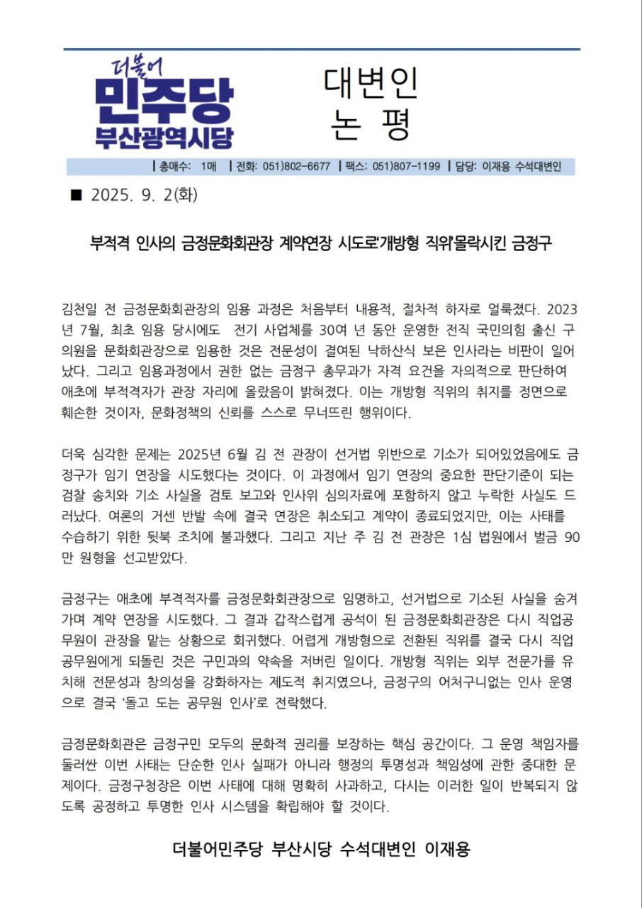 금, 2025/09/05- 00:00 에 admin 에 의해 제출됨 [0] 관련 개인/그룹 민주당 부산시당 정당 더불어민주당 지역 부산 카테고리 논평브리핑 링크 https://busan.theminjoo.kr/party/sub/news/view.php?brd=65&post=3733&board_id=briefing Like 0 Dislike 0 댓글 달기 이름 제목 Comment 저장 Preview