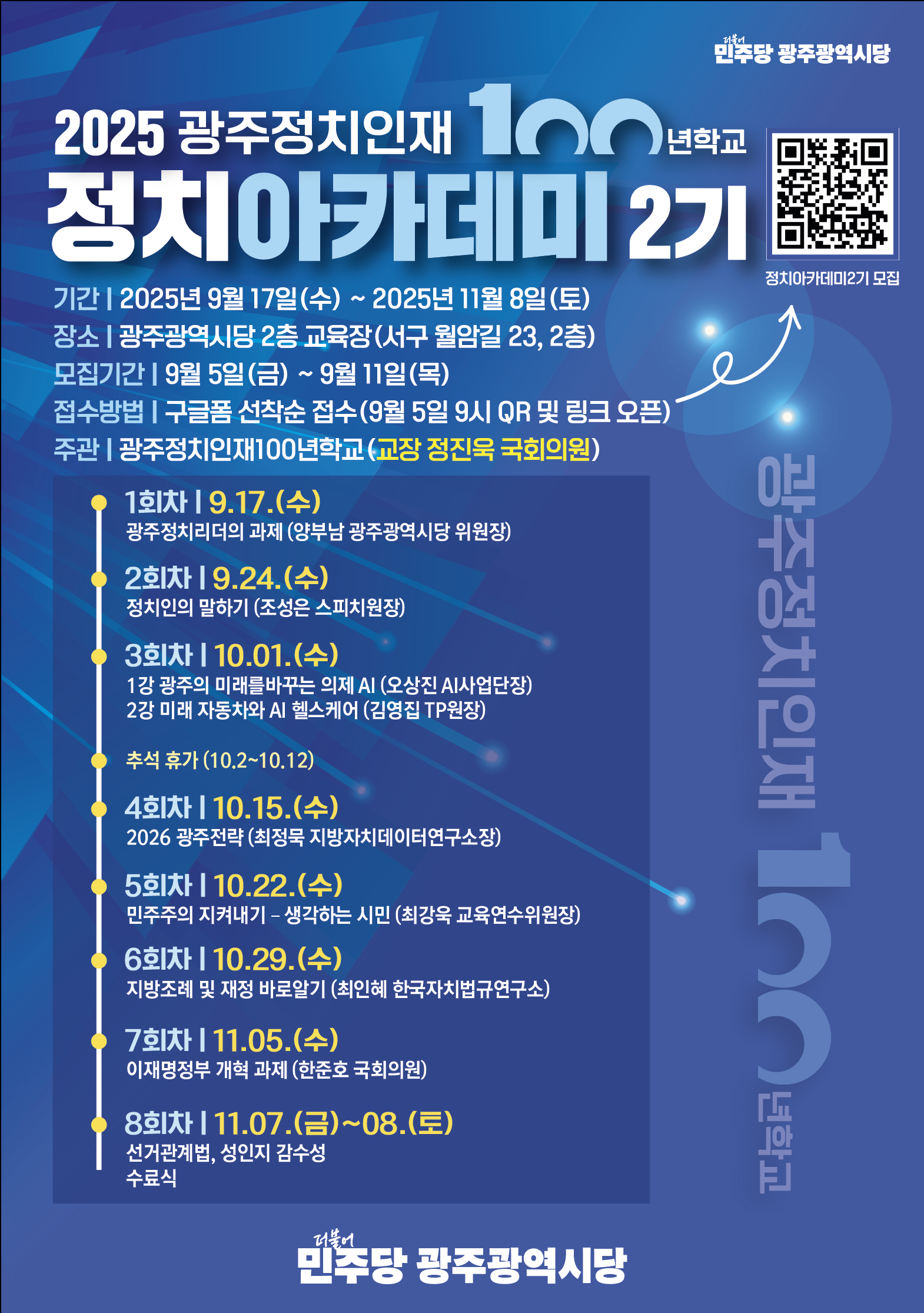 <광주정치인재100년학교 2025정치아카데미 제2기 모집공고>