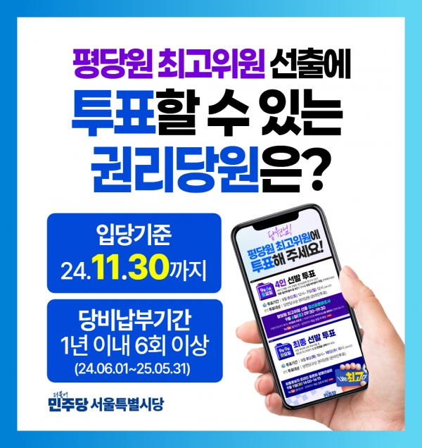 [평당원 최고위원 선출 관련 안내] -9월 9일(화) 14시 온라인토론회 및 합동연설회 -9월 9일(화) 16시 ~ 10일(수) 16시 최종 온라인 투표 평당원 최고위원 후보자 소개 페이지https://naver.me/5FEZ8hew
