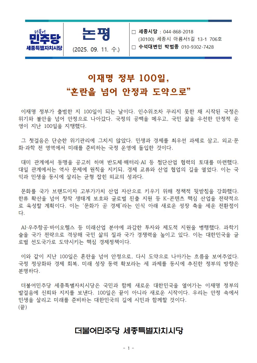 목, 2025/09/11- 00:00 에 admin 에 의해 제출됨 [0] 관련 개인/그룹 민주당 세종시당 정당 더불어민주당 지역 세종 카테고리 논평브리핑 링크 https://sejong.theminjoo.kr/party/sub/news/view.php?brd=54&post=992&board_id=briefing Like 0 Dislike 0 댓글 달기 이름 제목 Comment 저장 Preview