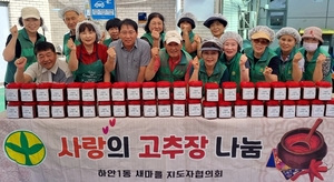 하안1동 새마을부녀회(회장 구미숙)와 새마을지도자협의회(회장 노태봉)는 지난 10일 하안1동 행정복지센터 마당에서 ‘사랑의 고추장 나눔행사’를 열었다고 밝혔다.이날 행사에는 하안1동 새마을부녀회원과 지도자협의회원 20여 명은 직접 고추장을 담가 독거노인과 저소득 가정 등 관내 취약계층 50여 가구에 전달했다.구미숙 회장은 “작년에 이어 올해도 회원들의 따뜻한 마음을 담아 정성스럽게 고추장을 준비했다”며 “무더운 여름을 이겨내느라 고생한 주민들이 맛있게 드시고 건강하게 여름을 마무리하길 바란다”고 전했다.노태봉 회장은 “이번 고추장