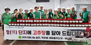 학온동 새마을지도자협의회(회장 이수남)와 새마을부녀회(회장 이선자)는 지난 16일 학온동 행정복지센터에서 를 진행했다고 밝혔다. 이날 행사에서 직접 담근 고추장(3kg)을 관내 저소득 취약계층과 홀몸어르신 50가구에 전달했다.이수남 회장은 “무더운 날씨에도 매년 봉사에 함께하는 새마을 지도자와 부녀회원들에게 감사하다”고 말했다.이선자 회장은 “앞으로도 어려운 이웃들에게 따뜻한 도움을 전할 수 있도록 꾸준히 노력하겠다”고 전했다.홍병곤 동장은 “지역사회를 위해 앞장선 새마을협의회와 부녀회원들의 헌신 덕분에 큰