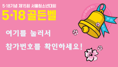 공지사항 · 5.18기념청소년대회 제 15회 '5.18골든벨' 참가번호 안내 5.18민주화운동 기념 제 15회 서울청소년대회 '5.18골든벨' 참가번호입니다. 5월 18일(토) 오전 9시 20분까지 서울시청 광장 5.… 2019-05-13