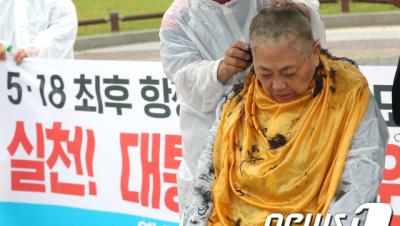 언론 · 기사모음 · 주먹밥 '5.18 옛 전남도청 복원 촉구 삭발식' (2018년-38주년) (서울=뉴스1) 구윤성 기자 = 5.18 광주민주화운동 희생자 유가족이 26일 오전 서울 종로구 청와대 앞 분수광장에서 옛 전남도청 복원을 촉구하며 삭발하고 있다. 2018.6.… 2021-01-28