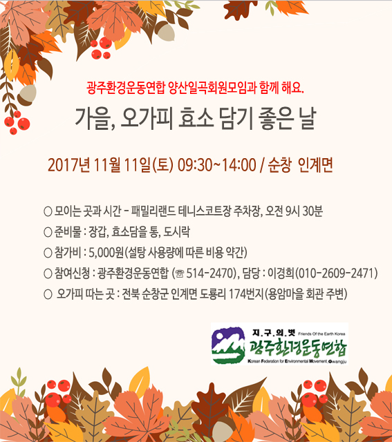 - 2017년 11월 11일(토) 09:30~14:00 / 순창 인계면
