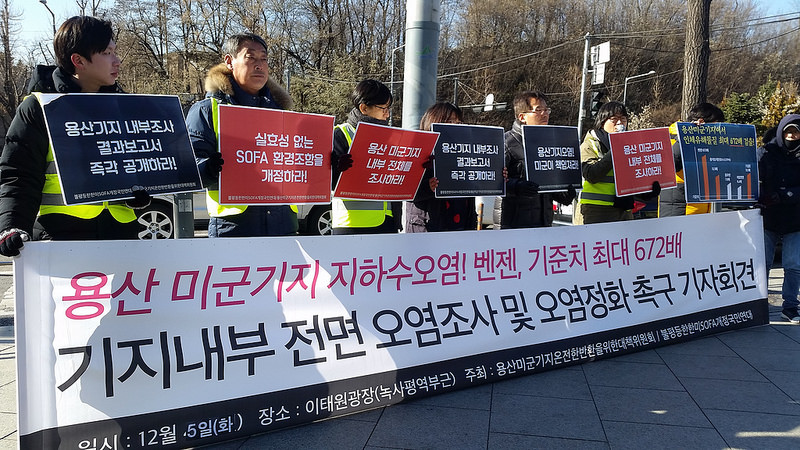 시민사회단체 연대네트워크인 '불평등한한미SOFA개정국민연대'와 '용산미군기지온전한반환을위한대책위원회'는 이번 용산 미군기지 내부 오염정보 공개를 계기로 한미당국에 아래와 같이 요구한다.