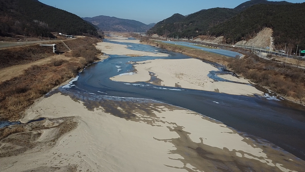 하얀 모래톱 위로 얕은 물길이 흘러가는, 이전의 회천의 모습을 되찾아간다. 재자연화되고 있다. ⓒ 대구환경운동연합 정수근[/caption]