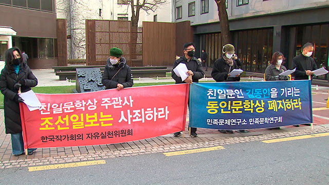 작가행동은 “동인문학상은 이제 문학의 문제가 아니라 우리 앞에 놓인 역사의 문제이자 문단 적폐 청산의 중대한 과제”라면서 “동인문학상을 주관하는 조선일보사는 역사와 국민 앞에 사죄하고 더는 동인문학상을 운영하지 말라”고 촉구했습니다.