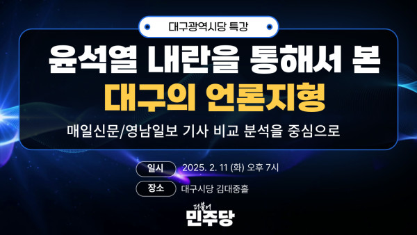 수, 2025/02/12- 00:00 에 admin 에 의해 제출됨 [0] 관련 개인/그룹 민주당 대구시당 정당 더불어민주당 지역 대구 카테고리 공지사항 ▼▼▼▼▼ 대구 극우수구 정치 타파 !!! 특강 다시보기 (56) [25. 02. 11 대구광역시당 특강] 윤석열 내란을 통해서 본 대구의 언론지형 - YouTube (56) [25. 02. 11 대구광역시당 특강] 윤석열 내란을 통해서 본 대구의 언론지형 - YouTube (56) [25. 02. 11 대구광역시당 특강] 윤석열 내란을 통해서 본 대구의 언론지형 - YouTube 링크 https://theminjoodaegu.co.kr/bbs/board.php?bo_table=boardinfo_&wr_id=1359 Like 0 Dislike 0 댓글 달기 이름 제목 Comment 저장 Preview