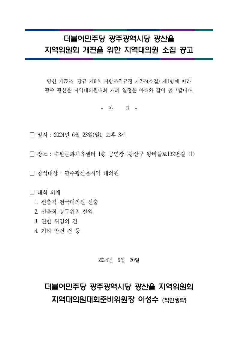 목, 2024/06/20- 00:00 에 admin 에 의해 제출됨 [0] 관련 개인/그룹 민주당 광주시당 정당 더불어민주당 지역 광주 카테고리 공지사항 링크 https://gwangju.theminjoo.kr/party/sub/news/view.php?brd=110&post=422&board_id=notice Like 0 Dislike 0 댓글 달기 이름 제목 Comment 저장 Preview