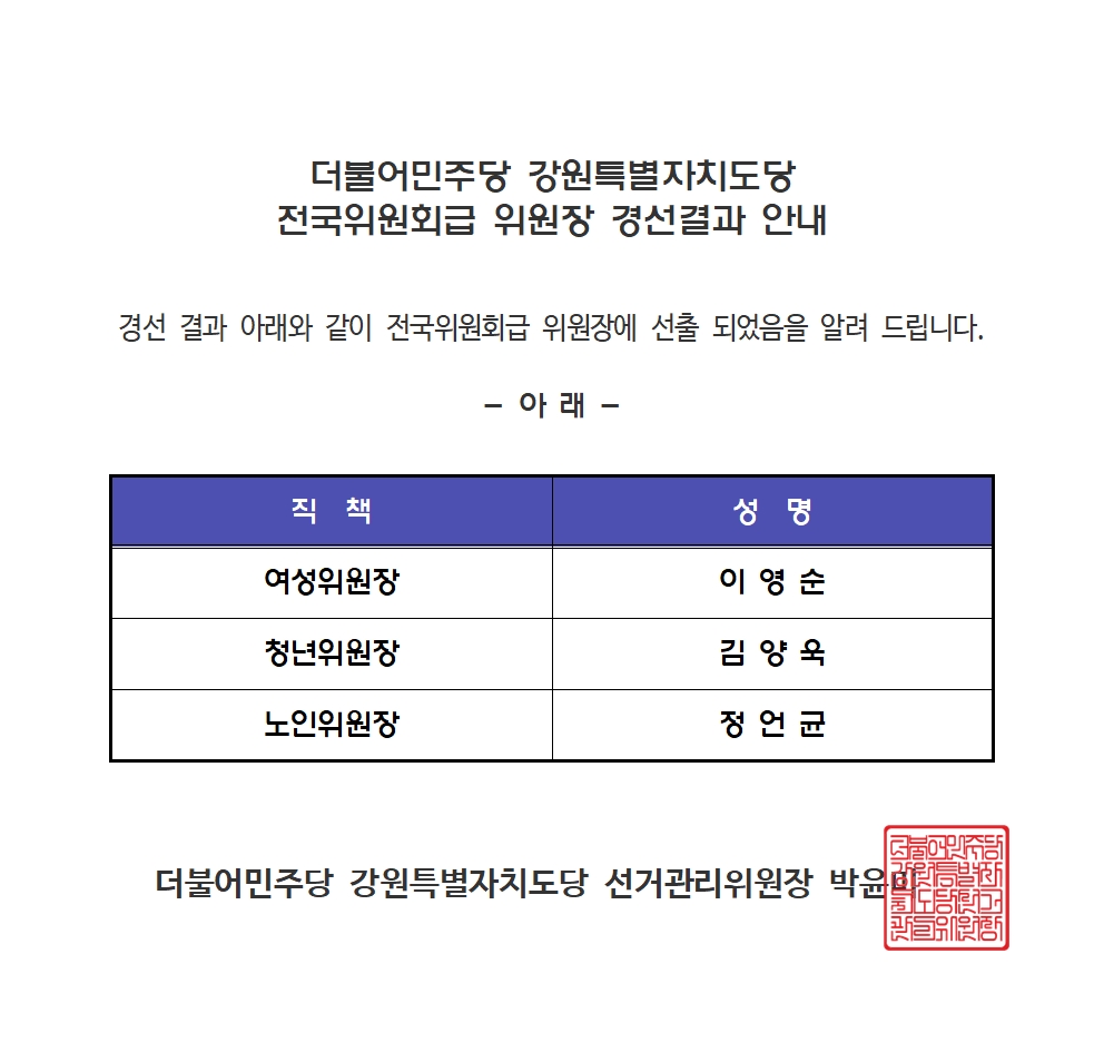 월, 2024/09/23- 00:00 에 admin 에 의해 제출됨 [0] 관련 개인/그룹 민주당 강원도당 정당 더불어민주당 지역 강원 카테고리 공지사항 링크 https://www.gwminjoo.kr/portal/F20000/F20100/boardView?board_key=2842&page=1 Like 0 Dislike 0 1 view 댓글 달기 이름 제목 Comment 저장 Preview