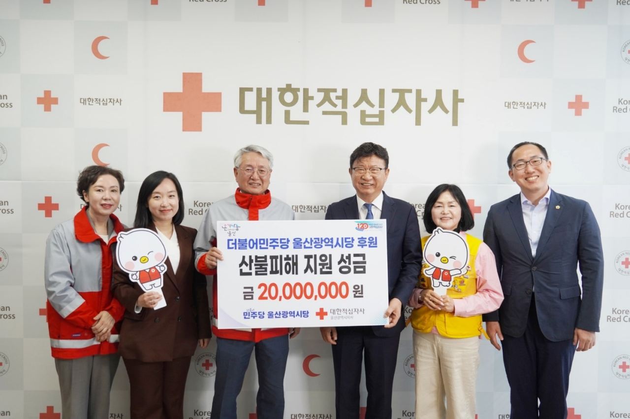 더불어민주당 울산광역시당(위원장 이선호)은 경북·경남 및 울산 울주군 일대에서 발생한 대형 산불로 피해를 입은 이웃들을 돕기 위해 성금 모금 활동을 전개하고, 모금된 성금을 4월 9일 대한적십자사 울산지사에 전달하였다.