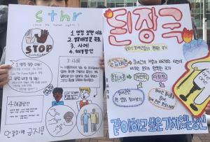 충현중학교는 1학년 학생들이 교과교육과정 일환으로 4월 16일~18일 차별과 갈등 해결을 위한 캠페인을 실시하고 있다.학생들은 수업시간에 우리 사회에서 나타나는 다양한 갈등과 차별, 인권침해 사례를 조사하면서, 차별과 갈등의 원인을 파악하고 해결 방안을 제시하며 실천하는 세계시민교육을 통해 공동체성을 함양하고 있다.이번 활동을 지도한 박민영 교사는 “수업시간의 배움을 삶과 연계된 캠페인과 연결함으로써, 학생들이 실천하는 세계시민으로 성장하기를 바란다”고 소감을 밝혔다.더불어, 위 캠페인에 참여한 학생은 ‘된장국!(된다, 장애인들의