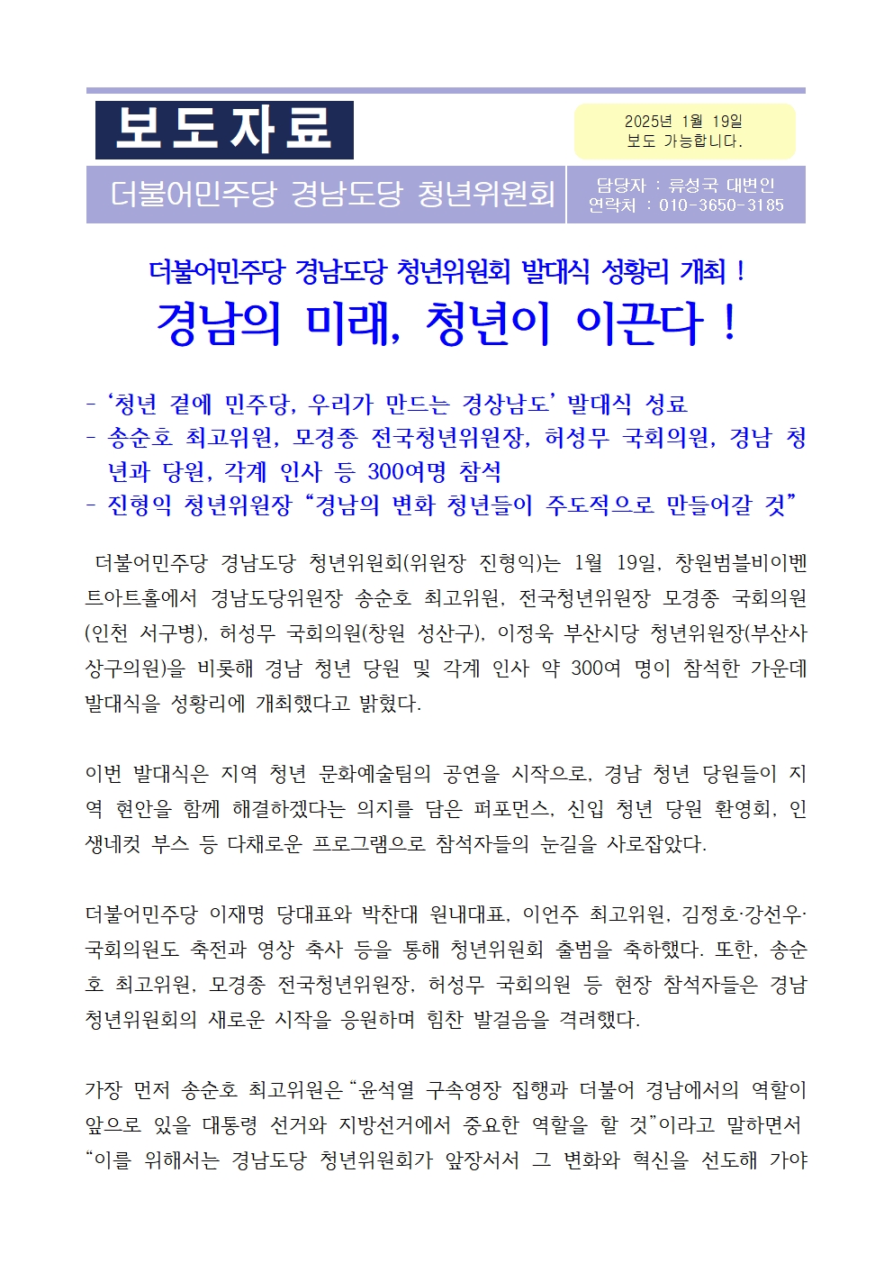 월, 2025/01/20- 00:00 에 admin 에 의해 제출됨 [0] 관련 개인/그룹 민주당 경남도당 정당 더불어민주당 지역 경남 카테고리 보도자료 링크 https://www.minjoogn.or.kr/sub02/sub02_01.php?code=020201&page=1&bbsData=&idx=820&search=&searchstring=&gubunx=&mode=view&m2= Like 0 Dislike 0 2 views 댓글 달기 이름 제목 Comment 저장 Preview