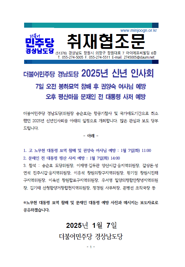 월, 2025/01/06- 00:00 에 admin 에 의해 제출됨 [0] 관련 개인/그룹 민주당 경남도당 정당 더불어민주당 지역 경남 카테고리 보도자료 링크 https://www.minjoogn.or.kr/sub02/sub02_01.php?code=020201&page=1&bbsData=&idx=818&search=&searchstring=&gubunx=&mode=view&m2= Like 0 Dislike 0 댓글 달기 이름 제목 Comment 저장 Preview