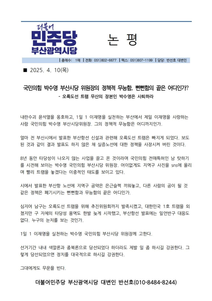 목, 2025/04/10- 00:00 에 admin 에 의해 제출됨 [0] 관련 개인/그룹 민주당 부산시당 정당 더불어민주당 지역 부산 카테고리 대변인 논평 디버깅파일 내려받기 전자점자 내려받기 점자뷰어 보기 --> 링크 https://busan.theminjoo.kr/party/sub/news/view.php?brd=65&post=3677&board_id=briefing Like 0 Dislike 0 댓글 달기 이름 제목 Comment 저장 Preview