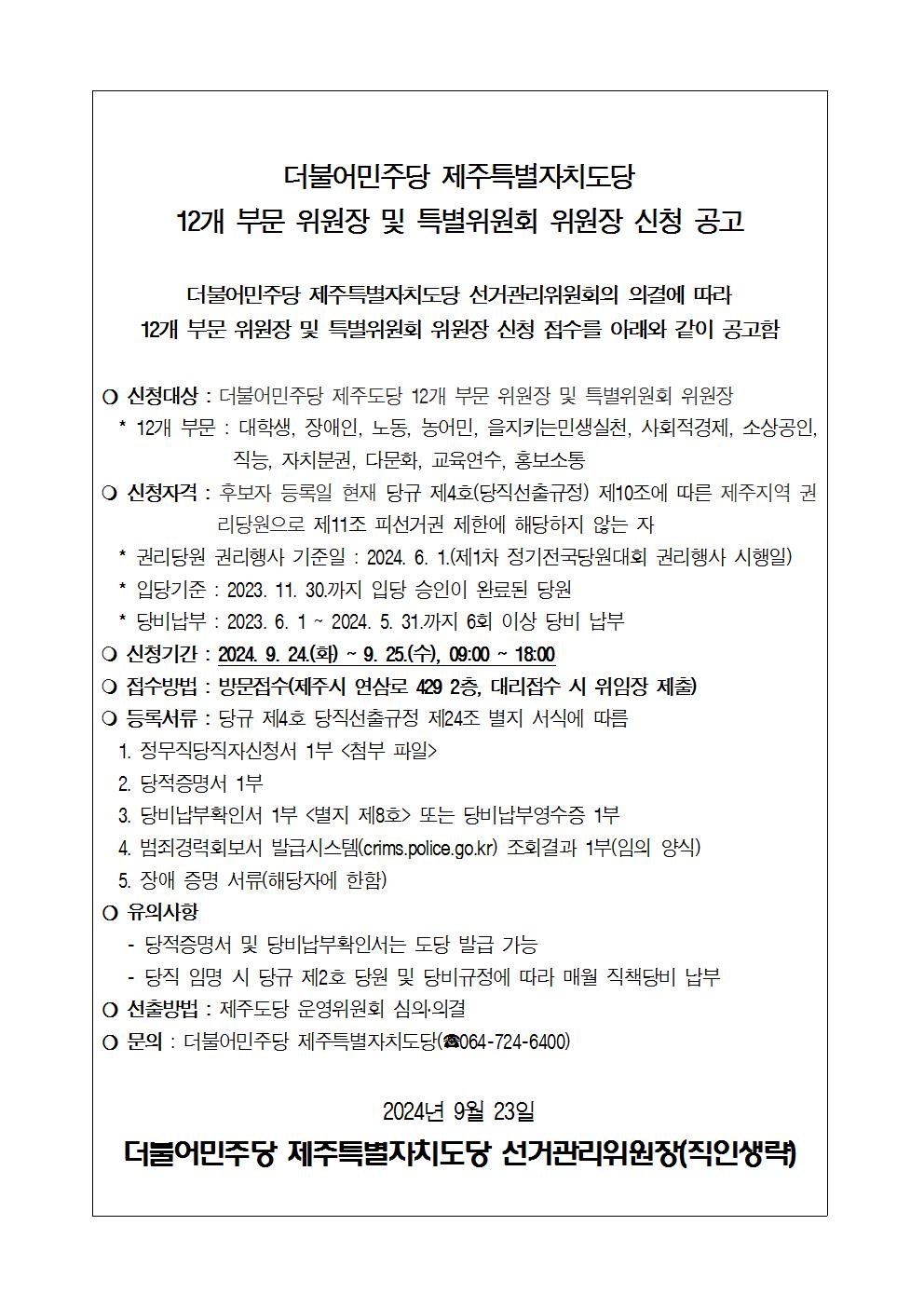 월, 2024/09/23- 00:00 에 admin 에 의해 제출됨 [0] 관련 개인/그룹 민주당 제주도당 정당 더불어민주당 지역 제주 카테고리 공지사항 링크 https://goodjeju.org/m/bbs/board.php?bo_table=1_1_1_1&wr_id=574 Like 0 Dislike 0 9 views 댓글 달기 이름 제목 Comment 저장 Preview
