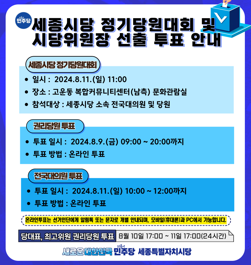→세종 권리당원 투표일시 : 8월 10일 17:00 ~ 11일 17:00(24시간)