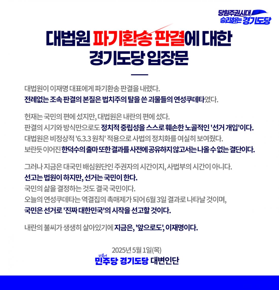 목, 2025/05/01- 00:00 에 admin 에 의해 제출됨 [0] 관련 개인/그룹 민주당 경기도당 정당 더불어민주당 지역 경기 카테고리 보도/논평 링크 https://www.minjookg.kr/sub01_news/press.php?board_page=1&%3Bboard_mode=view&%3Bboard_no=111487 Like 0 Dislike 0 1 view 댓글 달기 이름 제목 Comment 저장 Preview
