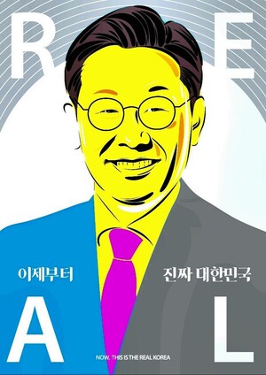 약 1천명 이상의 후원을 받고 있는 광명시 출신 가 한승민 디자이너와 협업을 통해 민주당 이재명 후보를 홍보하는 포스터 25종을 제작해 눈길. 고리들 화가는 본지와의 인터뷰를 통해 “예술가로서 문화예술 공약이 분명하고 좋은 후보를 돕고자 약 1주일간 디자인 작업을 했다”고 밝히며 “한 국민이 자발적으로 예술품을 만들었다”고 말했다.고리들 화가는 1위 포스터(*사진 참조) 선정 이유에 대해 “1위는 팝아트형 변형 3개 중 밝은 것이며, 테두리의 대문자 ‘REAL’은 요즘 전 세계적으로 유행하는 팝아트 느낌이 강해서 ‘글