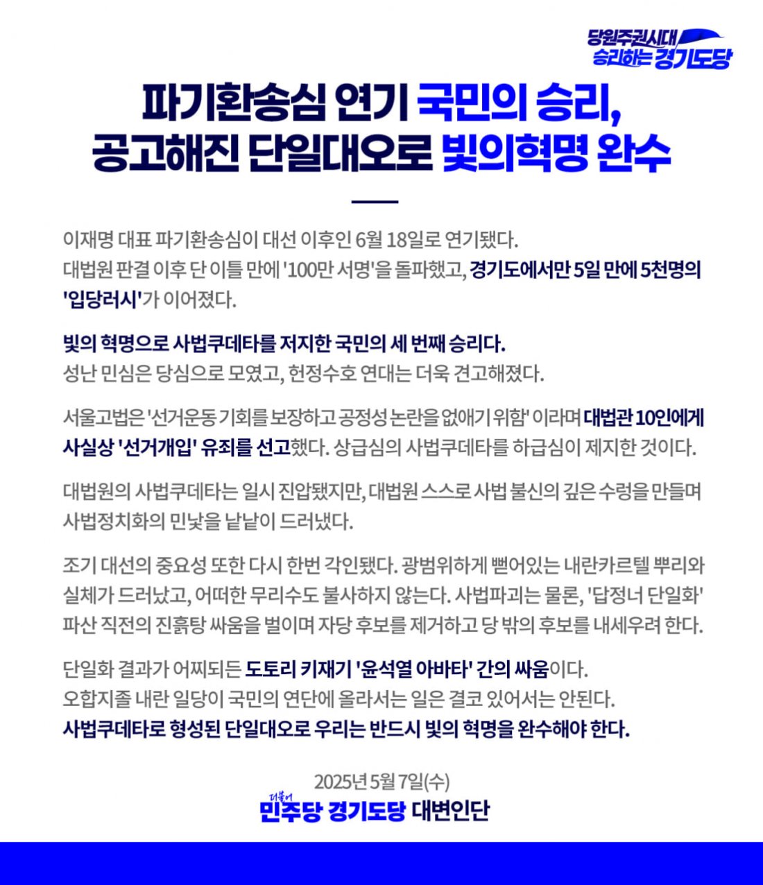 수, 2025/05/07- 00:00 에 admin 에 의해 제출됨 [0] 관련 개인/그룹 민주당 경기도당 정당 더불어민주당 지역 경기 카테고리 보도/논평 Like 0 Dislike 0 댓글 달기 이름 제목 Comment 저장 Preview